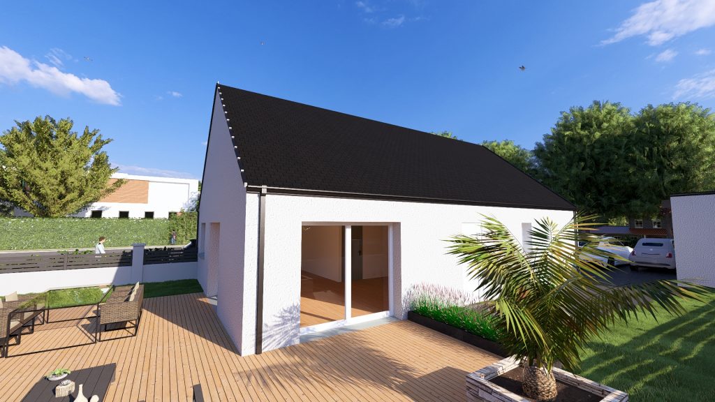 Plain-pied de 84 m², 3 chambres, belle pièce de vie lumineuse, garage intégré.
