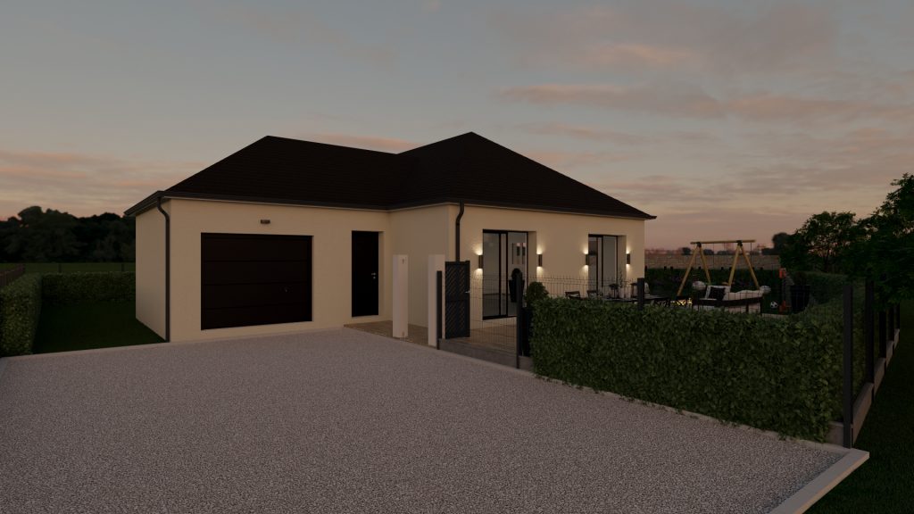 Plain-pied de 90 m², 3 chambres, belle pièce de vie lumineuse.