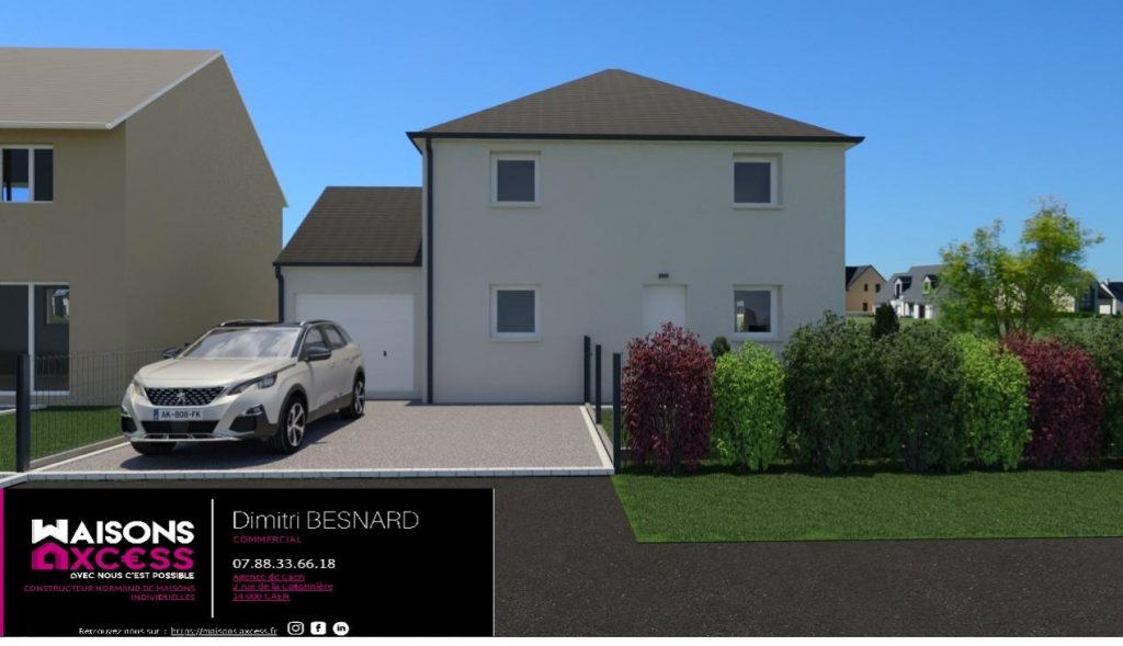 Maisons Axcess, 1er constructeur régional, propose un projet idéalement situé à Rots sur un terrain de 362m² bien exposé dans un lotissement calme.