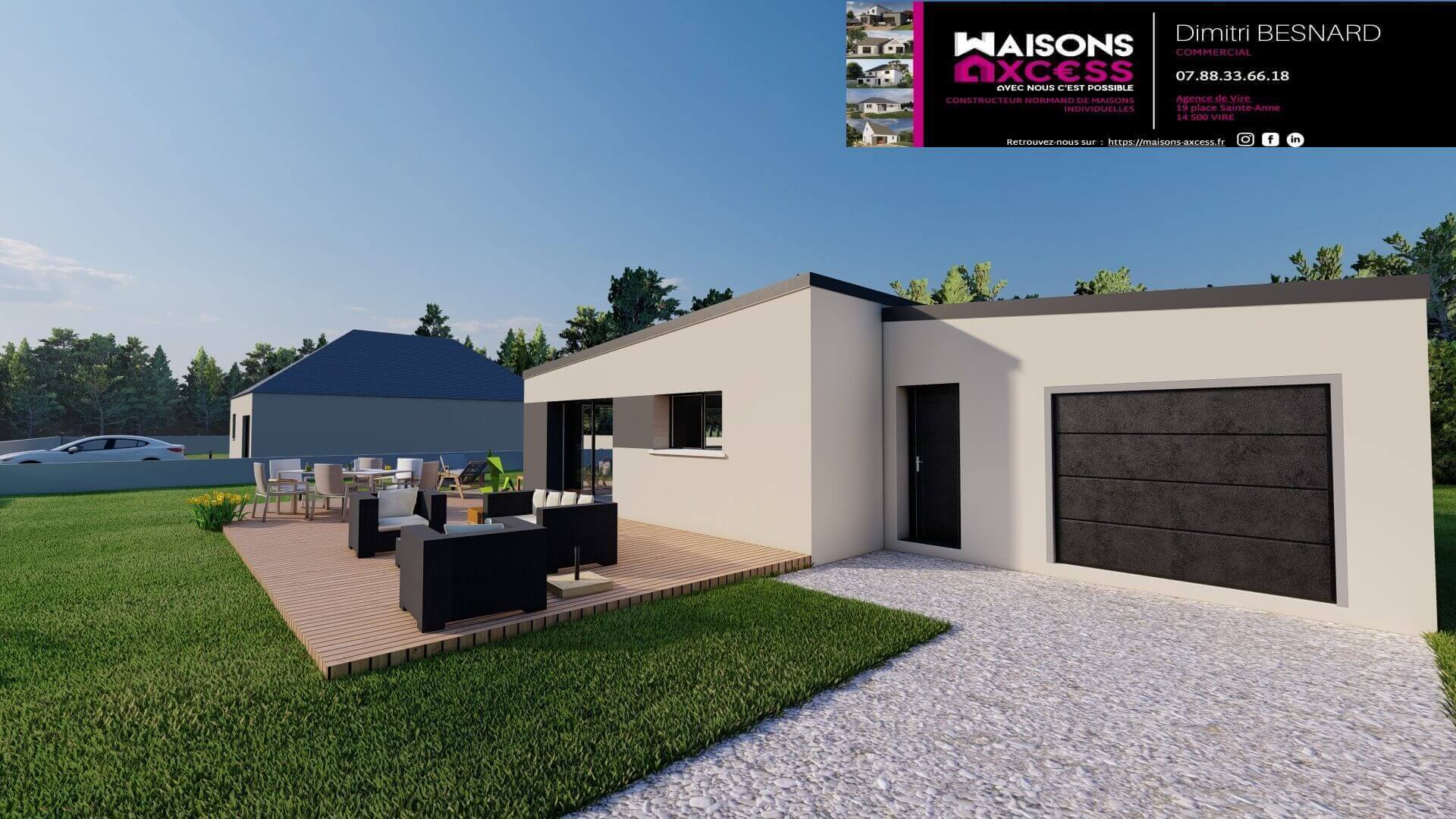REFERENCE: DIMCAEN PLAIN PIED MODERNE DE 80M²Maisons Axcess, 1er constructeur régional, propose un projet idéalement situé à Missy sur un terrain bien exposé de 455m².La commune se situe à 10 min du périphérique de Caen et plusieurs commodités.La maison de plain pied a...